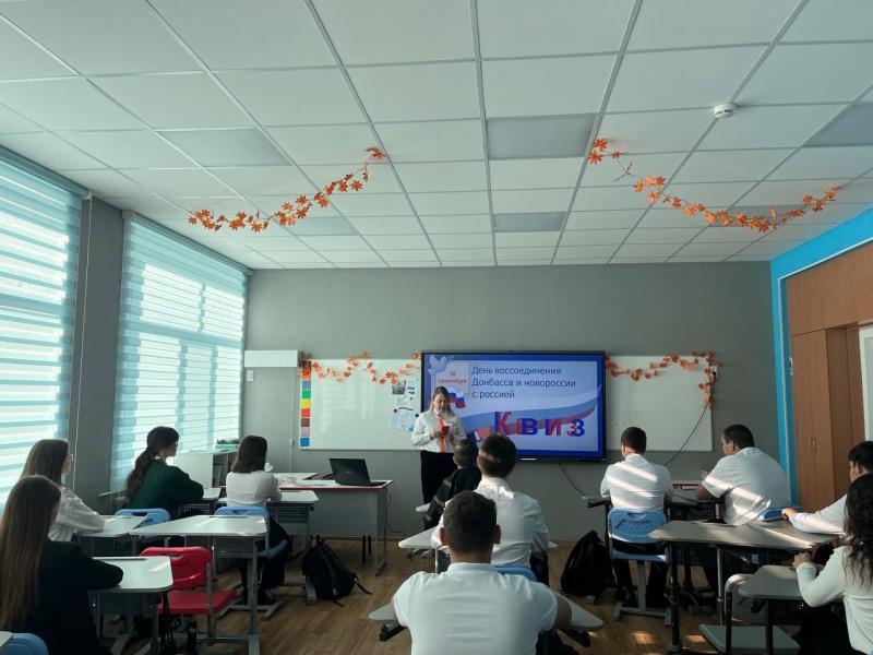 Сегодня советник директора по воспитанию Галина Арканова провела для учащихся 9 класса лекцию «Возвращение в состав России: сила единства», а так же квиз посвященный этой памятной дате.