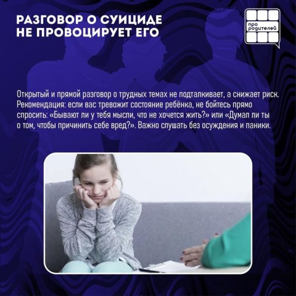 Каждый родитель может сыграть ключевую роль в предотвращении трагедии. Часто дети не говорят прямо: они отстраняются, замыкаются, подают тревожные сигналы через поведение. И именно внимательный взрослый рядом способен заметить то, что не увидит никто другой.