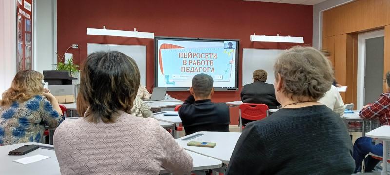 В рамках единых методических дней учителя школы приняли участие в осенней образовательной сессии "Цифровые каникулы". В формате видеолекции было рассказано об использовании учителем исскуств енного интелекта. На практическом занятии закрепили знания.