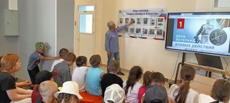 Второй день в пришкольном лагере был посвящен Дню ветеранов боевых действий. Кряжев С.В. рассказал ребятам о военных страницах истории современной России. Поименно вспомнили тех жителей сельского поселения, выпускников школы, кто участвовал в военных операциях. Минутой молчания почтили память всех, кого нет с нами.