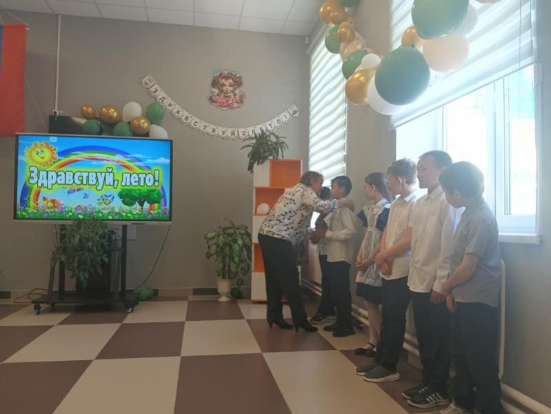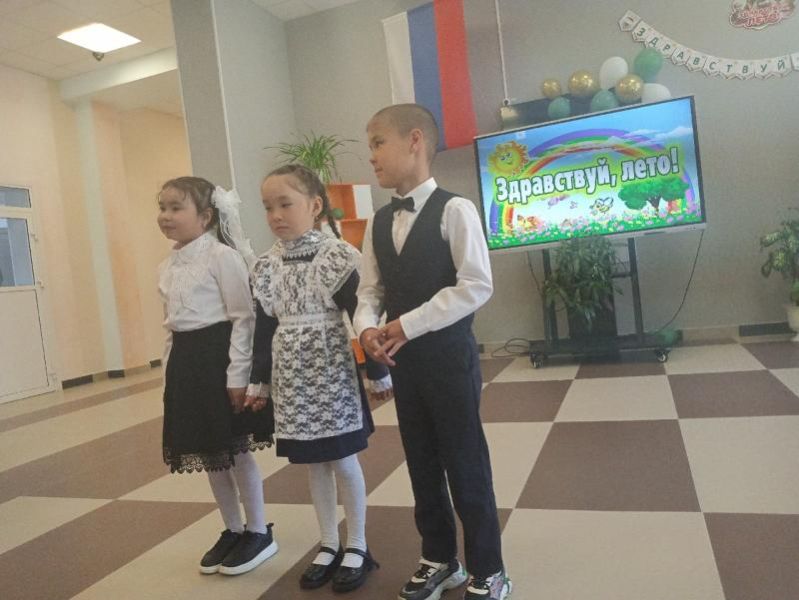 Здравствуй, лето! Так называлась заключительная линейка, посвящённая окончанию учебного года. Заведующая филиалом Атбакова Г. Т. вручила грамоты тем, кто на хорошо и отлично закончили учебный год и тем, кто был активистом школы. Трогательный момент -прощание с начальной школой, где четвероклассники выразили свою благодарность учителям и ушли с линейки со своим новым классным руководителем.