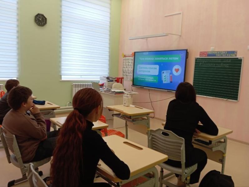 Ребята просмотрели видеоролик "Итоги года". Заполнили индивидуальные карты профориентационно значимых событий. В игре "ВопросоХод" обсудили профессиональные интересы, цели, качества человека.