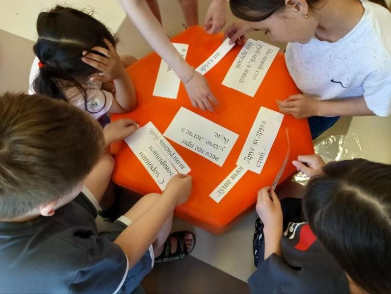 Ребята приняли участие в игре "Завяжем узелки потуже на память о друзьях и дружбе". Составляли пословицы, выполняли командные задания на скорость, расшифровывали слово "дружба". И с небольшим отрывом победил отряд "Экстремалы"!
