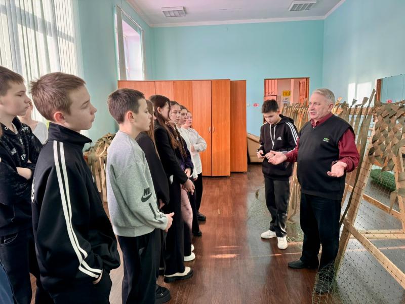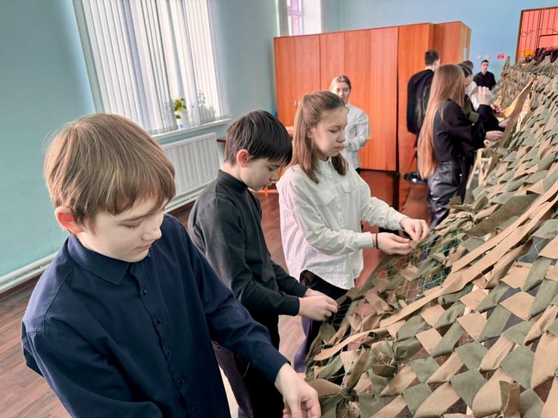 Сегодня учащиеся 7 класса нашей школы совершили важный и душевный визит в штаб волонтёрского движения «Зелёные паучки». Ребята приняли участие в мастер-классе по плетению маскировочных сетей — труде нелёгком, но бесконечно нужном для наших защитников.