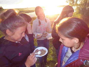 22 июня 1941 года в 4 часа утра началась самая жестокая и кровопролитная война в истории человечества. В этот день мир вздрогнул. А советские солдаты, юноши и девушки со школьной скамьи, пошли защищать свою Родину. Каждый год юное поколение, ветераны, родители, общественность села Байкалово выходит на встречу Рассвета Победы. Готовим простую солдатскую кашу, травяной чай, поем песни военных лет. В этом году состоялась "Битва хоров" между представителями старшего поколения и учащимися в исполнении песен. Ребята и хор ветеранов были на высоте, не уступили друг другу! Волонтеры прикрепили всем участникам голубые ленточки, станцевали танец с полотнищами российского триколора, пригласили всех на вальс времен войны. Тут и каша подоспела! Напоследок каждый зажег свечу, вспомнили своих родных, защищавших Родину в годы войны... И свечи красиво поплыли по реке...