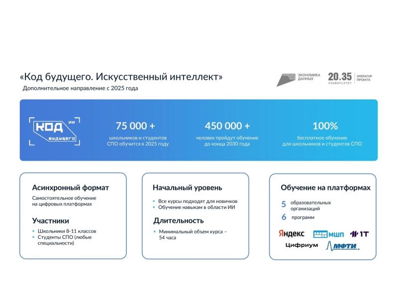 28 августа 2025 г. стартовал прием заявок на участие в проекте «Код будущего», «Код будущего. Искусственный интеллект».
