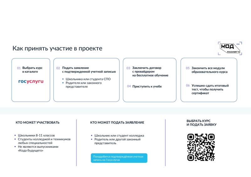 Ознакомиться с проектом «Код будущего» можно на сайте ЕПГУ по адресу www.gosuslugi.ru/futurecode