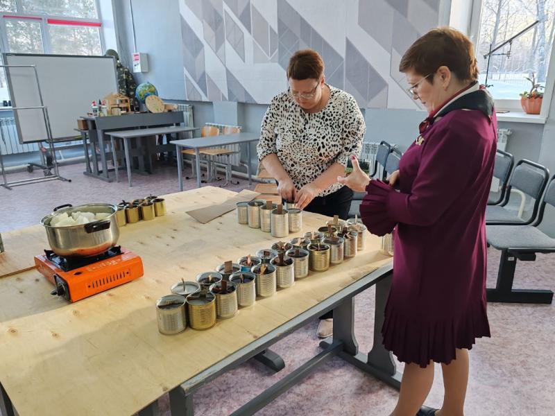 Педагоги МАОУ "Байкаловская СОШ" приняли эстафету от ребят и произвели заливку заготовленных окопный свечей для военнослужащих СВО. Учителями была организована акция "Письмо/открытка солдату", собраны баночки для свечей и средства на парафин, продукты питания и необходимые вещи для наших бойцов.