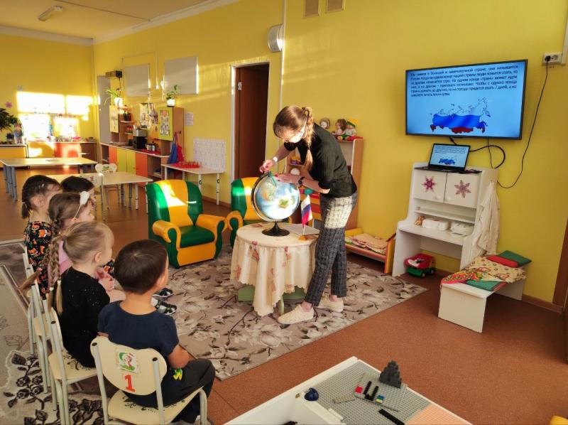 Мы беседовали о России, слушали наш гимн, рассматривали территорию на глобусе и собирали пазл с матрешкой. Это занятие позволило детям увлекательно познакомиться с символами нашей Родины.