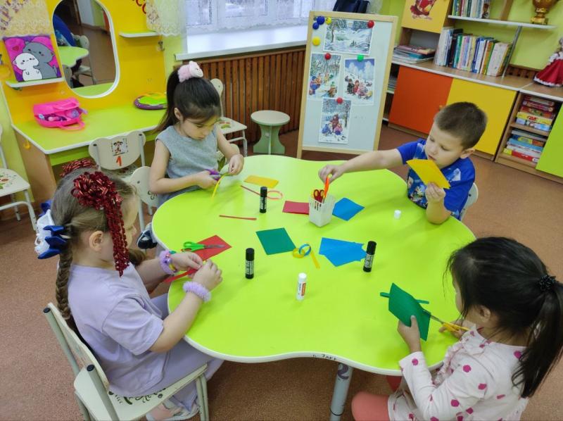Дети с удовольствием работали с цветной бумагой, обрывая и соединяя различные элементы, чтобы создать своего собственного пушистого друга. Это занятие не только развивает мелкую моторику, но и вдохновляет малышей на творчество и фантазию!