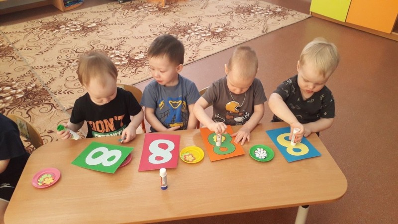 Сегодня наши ребята активно практиковали счет в прямом и обратном порядке в пределах 9. Мы научились делить предметы на две части и совершенствовались в умении сравнивать пять предметов по ширине путем наложения.