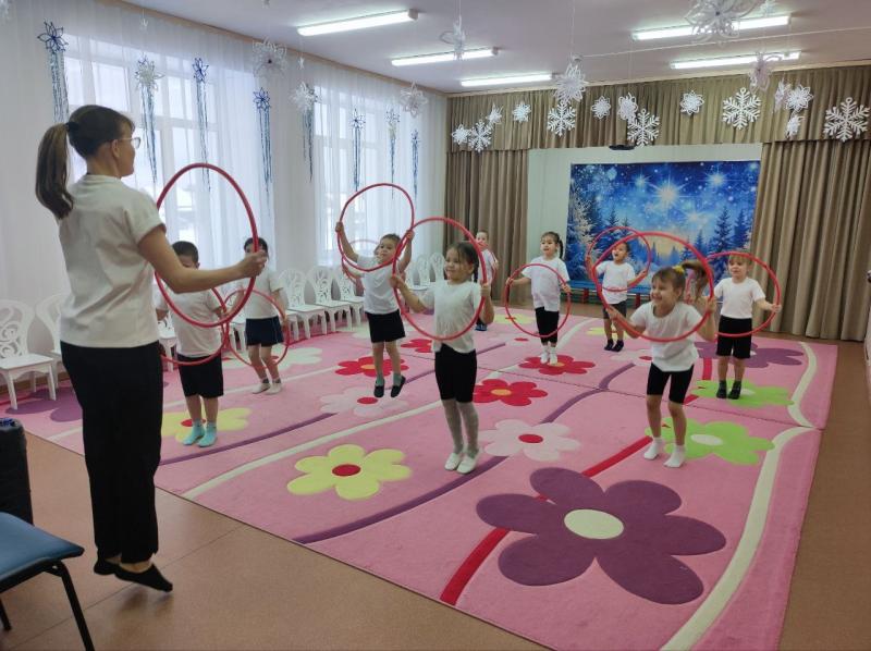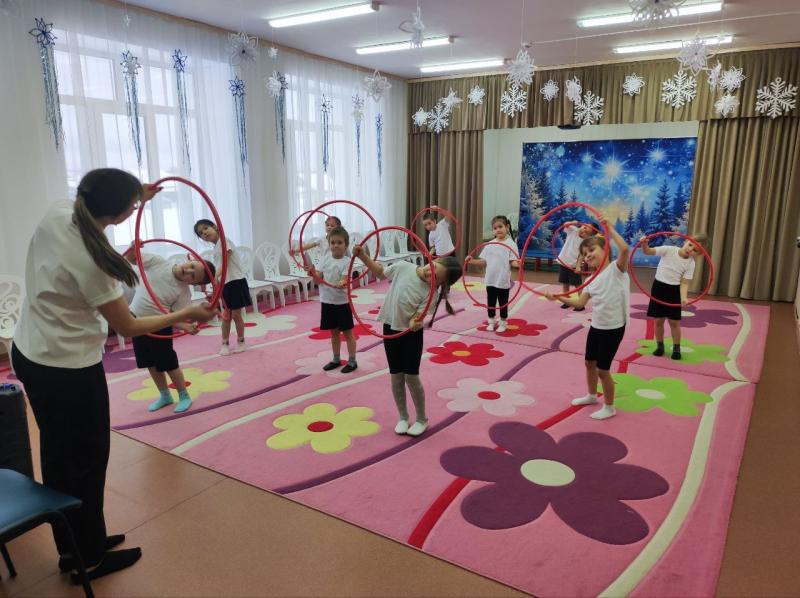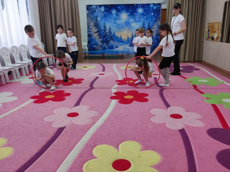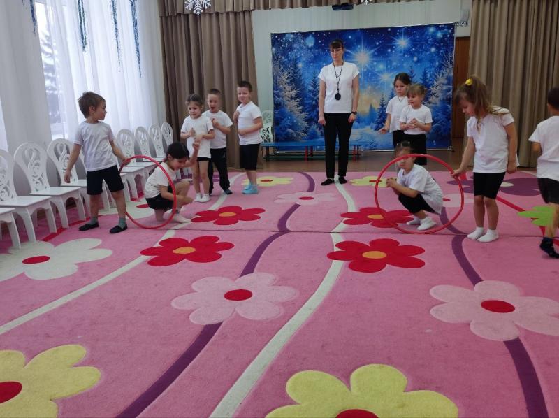 Ребята старшей группы активно участвовали на занятии, выполняя комплекс упражнений с обручами. Мы также сосредоточились на упражнениях, направленных на развитие равновесия.