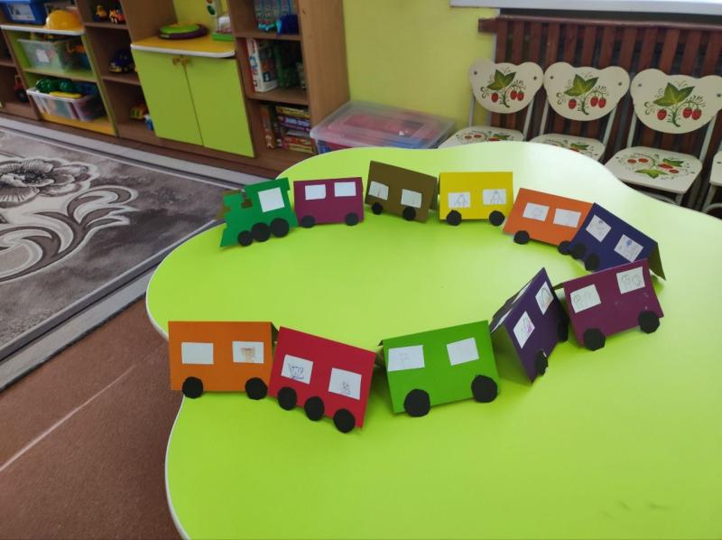 В завершение недели мы закрепили полученные знания аппликацией «Поезд с вагонами». Каждый ребенок смог создать свой уникальный вагон, которые закрепили к локомотиву, что стало ярким финалом нашего тематического путешествия!